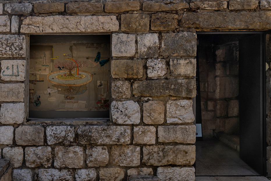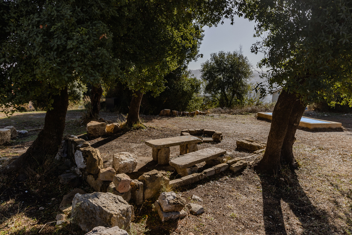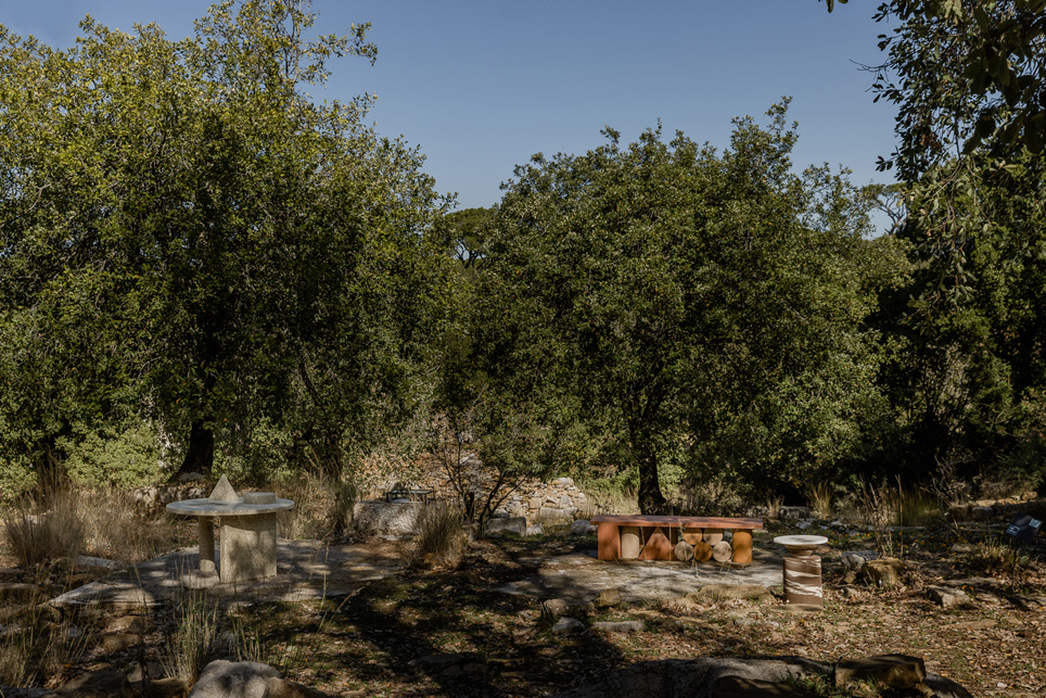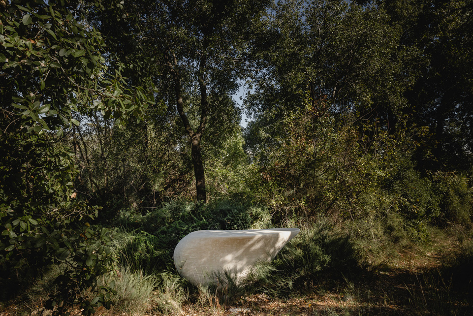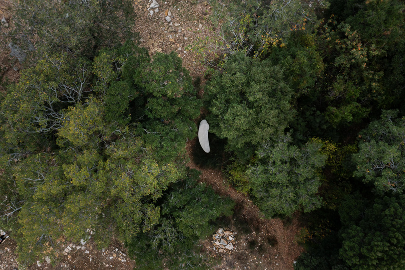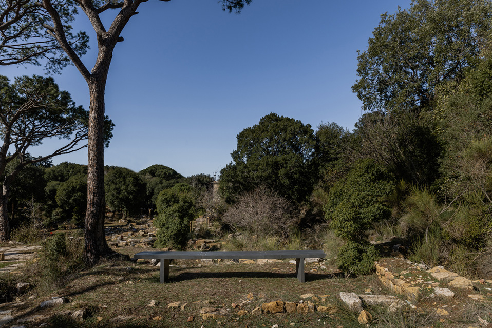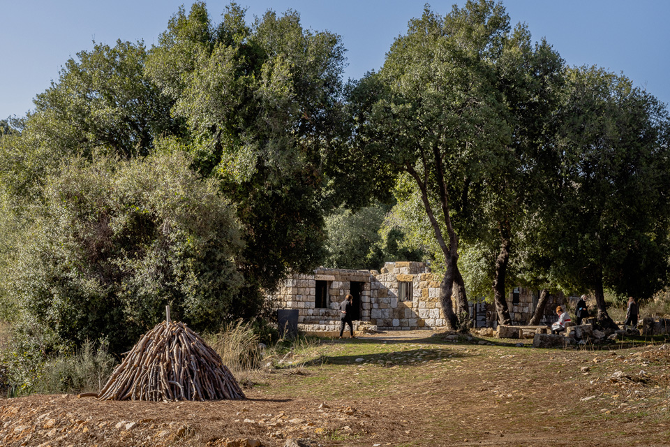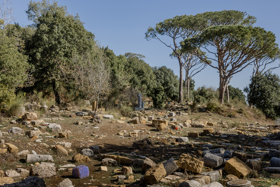 Deir el Kalaa is more than a forgotten archaeological site in the vicinity of Beirut; it is a place where the geography is revealed in a glance, simultaneously embracing the sea and the main peaks of Lebanon. Today it is difficult to have a comprehensive reading of the site. The Roman Byzantine Village, which has been chosen for the exhibition, is disconnected from the worship esplanade. The ruins are a fragment of the ancient settlement; they lie between scattered wild flowers, under magnificent oak and pine trees. More than picturesque scenery, it is a melancholic garden that has witnessed many events of our ancient and contemporary history. Intervening in a place loaded with so many geographic landmarks, history, and landscape references, is a challenge - one of being able to reconnect the three aspects of the site using the artworks as tactical interventions, or “machines à voir”, creating parallel narratives by-way-of a promenade leading through a series of fragments. For Lost in the Right Direction, the seventeen exhibited works have been crafted in relation to Deir el Kalaa, and in return, they take possession of its landscape. Their mere presence draws attention and significance back to the site, and their positioning makes the archaeology readable again. They highlight the main amenities of the ancient town: its streets, houses, baths, its church, olive presses, and shops. Deir el Kalaa provides a stage for the artworks, as much as the artworks create a setting for a new reading of the place. At the main entrance, that has been shifted to the valley side, a traditional charcoal mound sits as the first milestone leading the way. It calls to mind the preparation for the winter season and the fire smoldering under the ashes. It reflects on the theme of regeneration, a central idea for the exhibition.